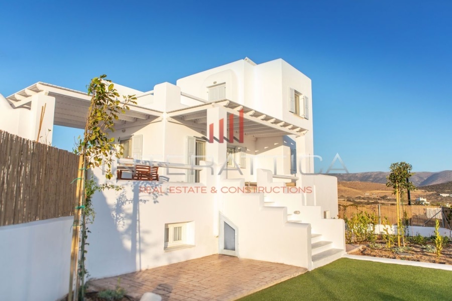 וילה למכירה בפירגאקי, נאקסוס, 151 מ"ר, מצב: מדהים, קומה: קומת קרקע, 3 קומות, 5 חדרי שינה, 2 מטבחים, 4 חדרי אמבטיה, חימום: עצמאי, נוף: נוף ים, שנת בנייה: 2019, וילה קיקלאדית מרהיבה (151 מ"ר) במרחק 100 מ' מהים, מחולקת ל-3 קומות, בנויה על שטח בטוח של 1.5 דונם. עם מבנה קדמי המבטיח פרטיות וביטחון. הבנייה האיכותית הגבוהה, האסתטיקה המודרנית והקישוט החיצוני עם פרגולות בשילוב עם בריכה ומנגל ייצרו את התנאים המושלמים לרגעים של רגיעה. בקומת הקרקע של הבית יש סלון בהיר עם קמין וגישה לגינה, מטבח פתוח ומושלם, חדר שינה אחד, חדר אמבטיה אחד עם מקלחת, בקומה הראשונה נמצא חדר השינה הראשי עם חדר אמבטיה משלו ומרפסת גדולה עם נוף פנורמי לים, בקומה הנמוכה (כמעט קרקע) של הבית יש סלון ומטבח פתוח, 3 חדרי שינה ו-2 חדרי אמבטיה עם מקלחות משל עצמן. בנוסף לקומה זו כניסה נפרדת מהגינה. אישור אנרגיה: B, מקום חניה אחד, ריצוף: פרקט, מסגרות: אלומיניום, תכונות: קמין, אינטרנט, מכשירי חשמל, גרם מדרגות פנימי, חלונות כפולים, מנגל, מפואר, מכל צדדיו, חזית, חזית, בריכה, גינה, פיתוח חדש, צבוע, בית נופש, מרחק מ: ים (מ'): 100.